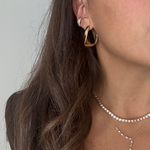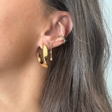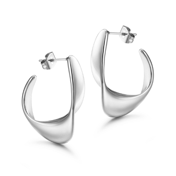 The Kai Hoops are an edgy everyday style hoop. They are hollow, making them lightweight for everyday wear. The flat curve of the hoop makes it look different from ever angle. Comes with a classic stud back closure.